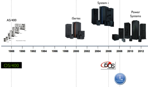 L'AS/400 a été commercialisé le 21 juin 1988, renommé iSeries en 2000, puis System i en 2004, power systems en 2008.